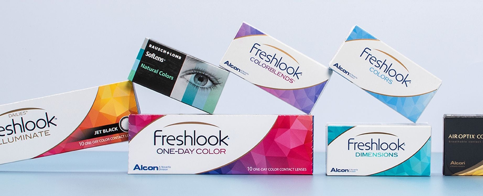 Avec 12 couleurs différentes qui se déclinent dans les marrons, gris, verts et bleus, les Freshlook Colorblends sont sans conteste les lentilles de contact de couleur qui vous proposent le plus grand choix de coloris pour renforcer votre regard et souligner le ton naturel de vos yeux, du plus clair au plus foncé.