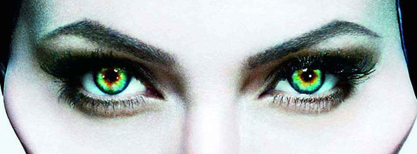 Dans le film Maléfique, le maquillage et le regard d’Angelina Jolie sont particulièrement frappants. D’après les professionnels, le maquillage aurait pris trois heures par jour. Pour ce qui est des yeux, l’artiste maquilleur se serait inspiré des teintes d’une pierre minérale dotée d’une couche métallique. La pierre a servi d’inspiration aux lentilles de contact effrayantes que Jolie porte dans le film. Ces lentilles ont été peintes à la main par un artiste spécialisé dans les lentilles de contact.
